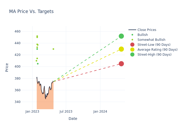 These 9 analysts have an average price target of $432.11 versus the current price of Mastercard at $374.46, implying upside.