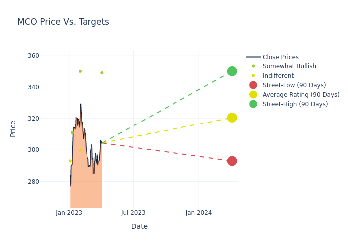 According to 5 analyst offering 12-month price targets in the last 3 months, Moody’s has an average price target of $330.4 with a high of $350.00 and a low of $300.00.