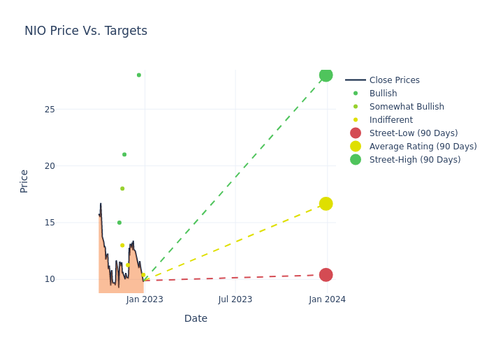 These 12 analysts have an average price target of $20.16 versus the current price of NIO at $9.8899, implying upside.