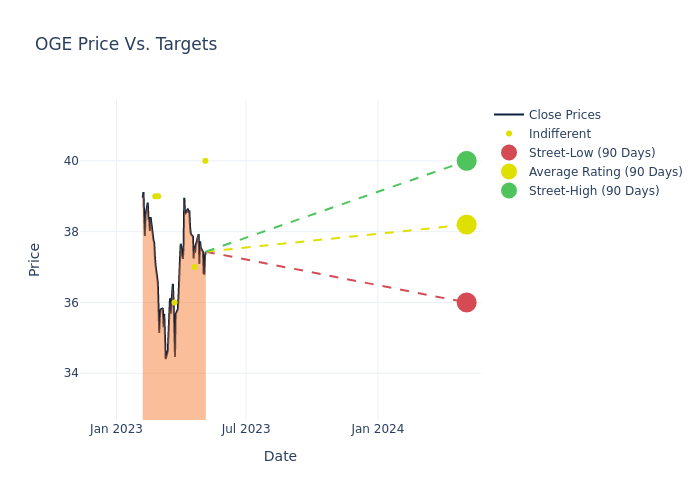 These 5 analysts have an average price target of $38.2 versus the current price of OGE Energy at $37.43, implying upside.