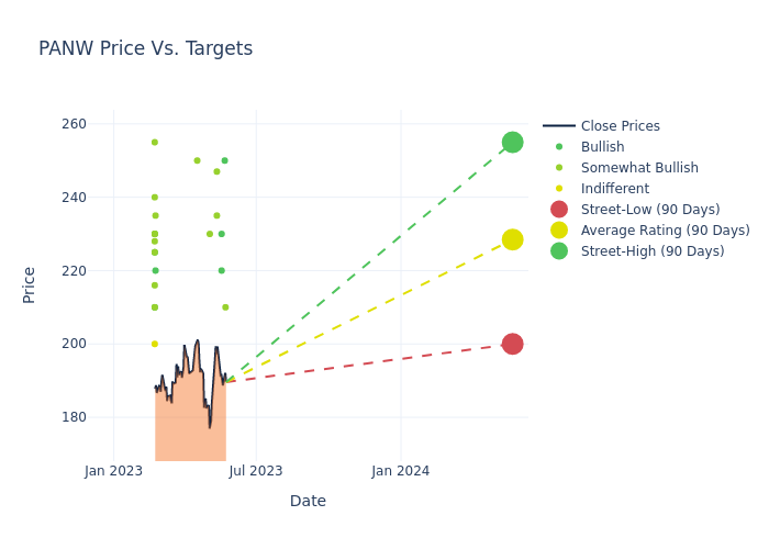 According to 11 analyst offering 12-month price targets in the last 3 months, Palo Alto Networks has an average price target of $234.27 with a high of $250.00 and a low of $210.00.