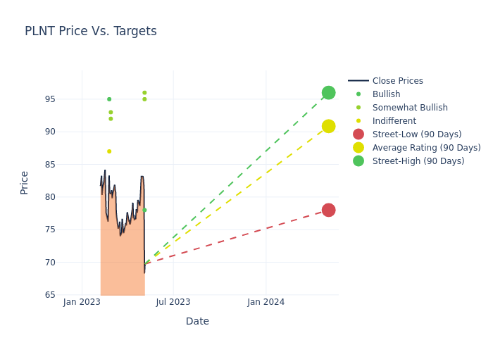 In the last 3 months, 10 analysts have offered 12-month price targets for Planet Fitness. The company has an average price target of $92.6 with a high of $105.00 and a low of $78.00.