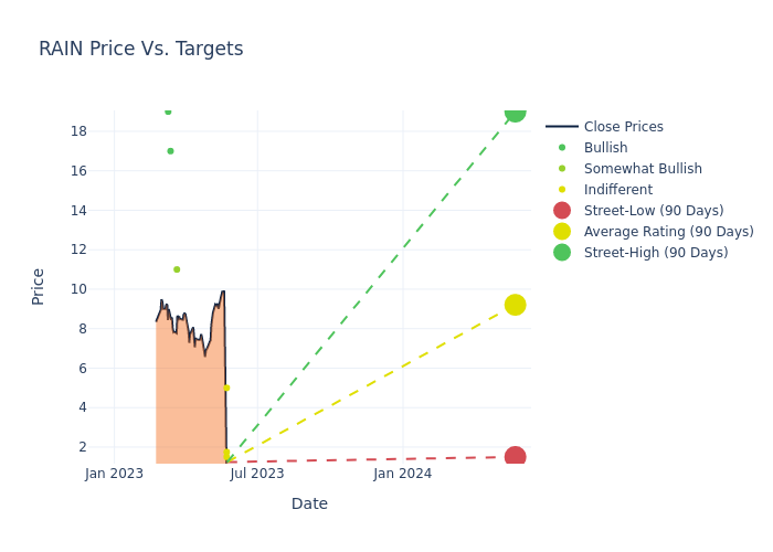In the last 3 months, 8 analysts have offered 12-month price targets for Rain Oncology. The company has an average price target of $10.91 with a high of $19.00 and a low of $1.50.