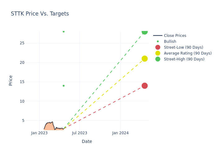 In the last 3 months, 6 analysts have offered 12-month price targets for Shattuck Labs. The company has an average price target of $23.33 with a high of $28.00 and a low of $14.00.