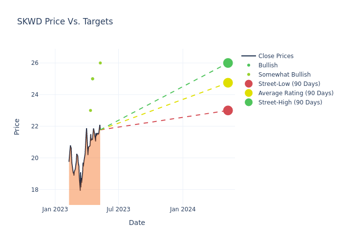 In the last 3 months, 7 analysts have offered 12-month price targets for Skyward Specialty. The company has an average price target of $24.57 with a high of $26.00 and a low of $23.00.