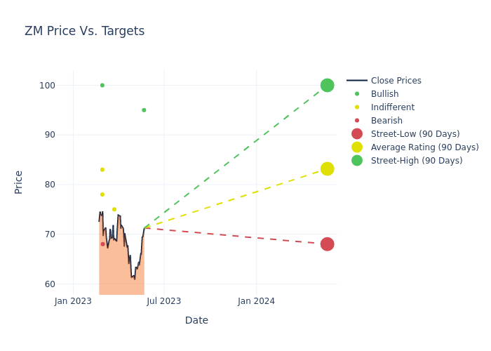 In the last 3 months, 7 analysts have offered 12-month price targets for Zoom Video Comms. The company has an average price target of $85.86 with a high of $102.00 and a low of $68.00.