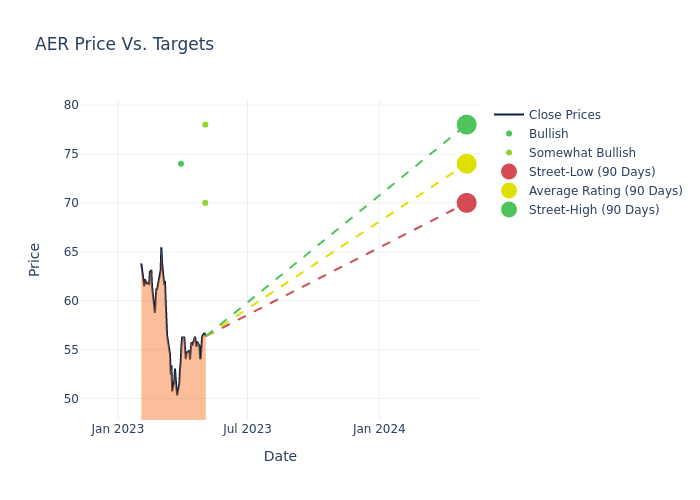 These 4 analysts have an average price target of $74.25 versus the current price of AerCap Holdings at $56.4, implying upside.