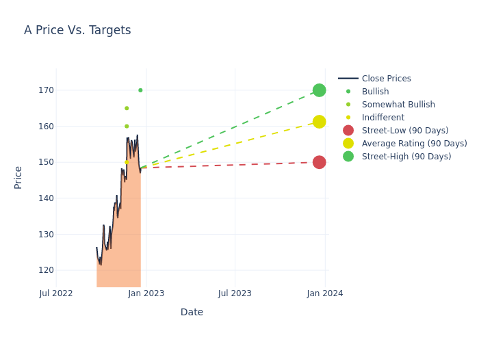 These 4 analysts have an average price target of $161.25 versus the current price of Agilent Technologies at $148.43, implying upside.