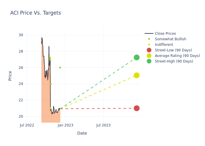 In the last 3 months, 6 analysts have offered 12-month price targets for Albertsons Companies. The company has an average price target of $25.88 with a high of $30.00 and a low of $21.00.