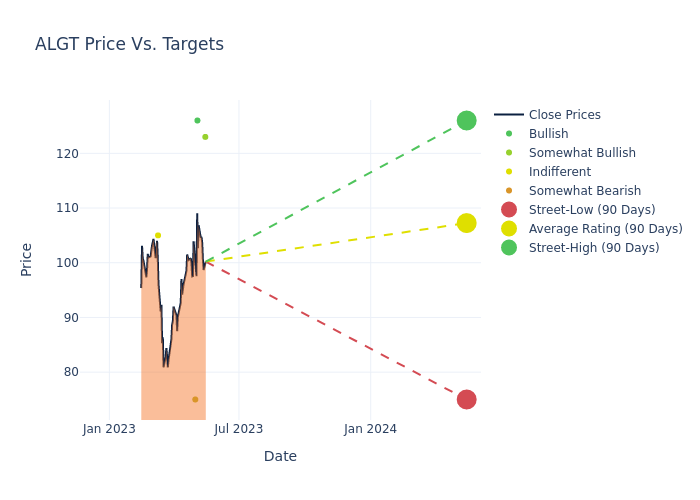 These 4 analysts have an average price target of $107.25 versus the current price of Allegiant Travel at $100.235, implying upside.