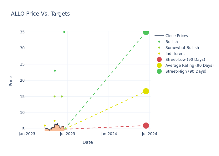 In the last 3 months, 13 analysts have offered 12-month price targets for Allogene Therapeutics. The company has an average price target of $17.42 with a high of $35.00 and a low of $6.00.