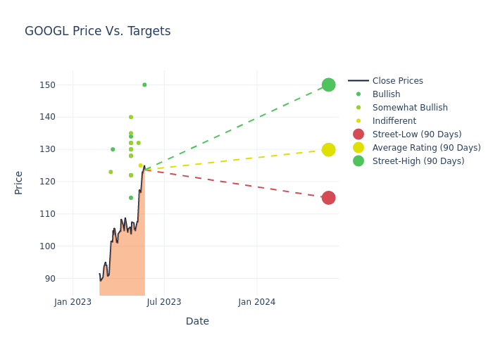 According to 22 analyst offering 12-month price targets in the last 3 months, Alphabet has an average price target of $128.14 with a high of $150.00 and a low of $115.00.