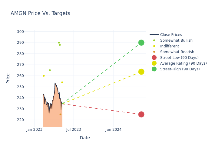 In the last 3 months, 7 analysts have offered 12-month price targets for Amgen. The company has an average price target of $258.43 with a high of $290.00 and a low of $225.00.