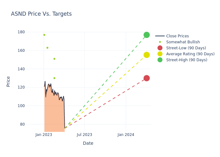 According to 3 analyst offering 12-month price targets in the last 3 months, Ascendis Pharma has an average price target of $148.0 with a high of $163.00 and a low of $130.00.
