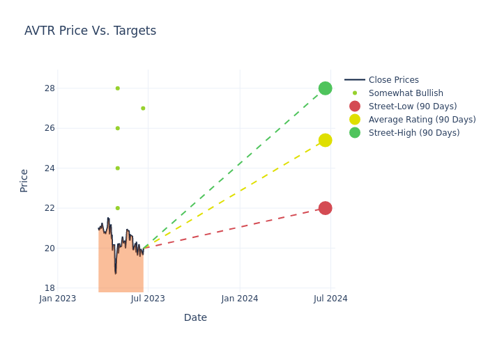 In the last 3 months, 6 analysts have offered 12-month price targets for Avantor. The company has an average price target of $25.33 with a high of $28.00 and a low of $22.00.