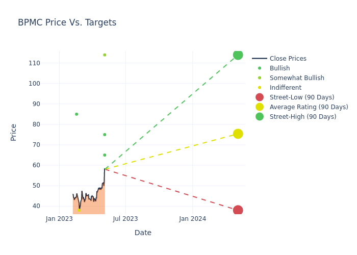 In the last 3 months, 17 analysts have offered 12-month price targets for Blueprint Medicines. The company has an average price target of $74.53 with a high of $114.00 and a low of $38.00.