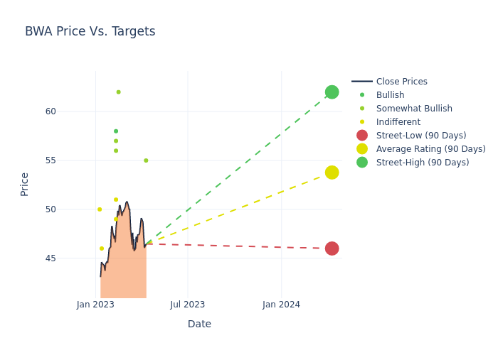 These 10 analysts have an average price target of $54.2 versus the current price of BorgWarner at $46.47, implying upside.