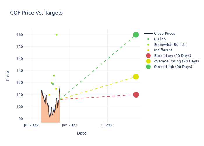 These 6 analysts have an average price target of $125.0 versus the current price of Capital One Financial at $106.08, implying upside.