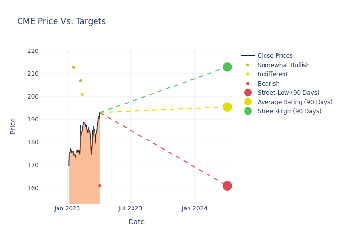 Below is a summary of how these 7 analysts rated CME Gr over the past 3 months. The greater the number of bullish ratings, the more positive analysts are on the stock and the greater the number of bearish ratings, the more negative analysts are on the stock