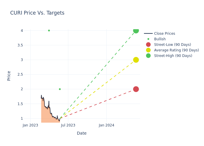 According to 4 analyst offering 12-month price targets in the last 3 months, CuriosityStream has an average price target of $2.5 with a high of $4.00 and a low of $2.00.