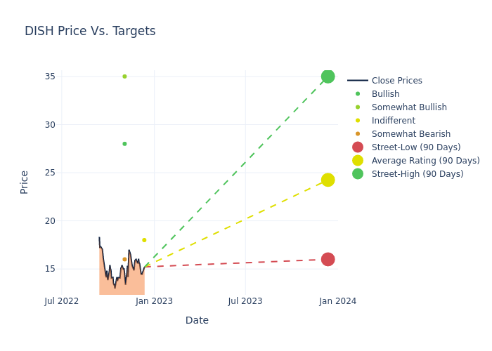 These 4 analysts have an average price target of $24.25 versus the current price of DISH Network at $15.215, implying upside.