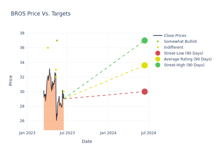 These 7 analysts have an average price target of $34.57 versus the current price of Dutch Bros at $28.99, implying upside.