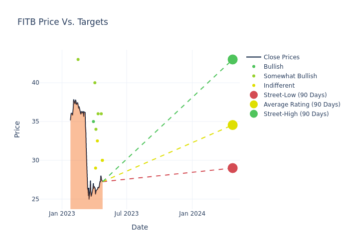 According to 12 analyst offering 12-month price targets in the last 3 months, Fifth Third Bancorp has an average price target of $35.12 with a high of $43.00 and a low of $29.00.