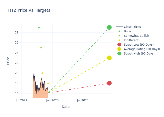 In the last 3 months, 5 analysts have offered 12-month price targets for Hertz Global Holdings. The company has an average price target of $22.2 with a high of $29.00 and a low of $18.00.