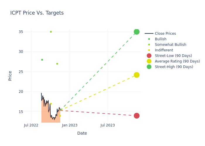 These 6 analysts have an average price target of $24.83 versus the current price of Intercept Pharmaceuticals at $15.32, implying upside.