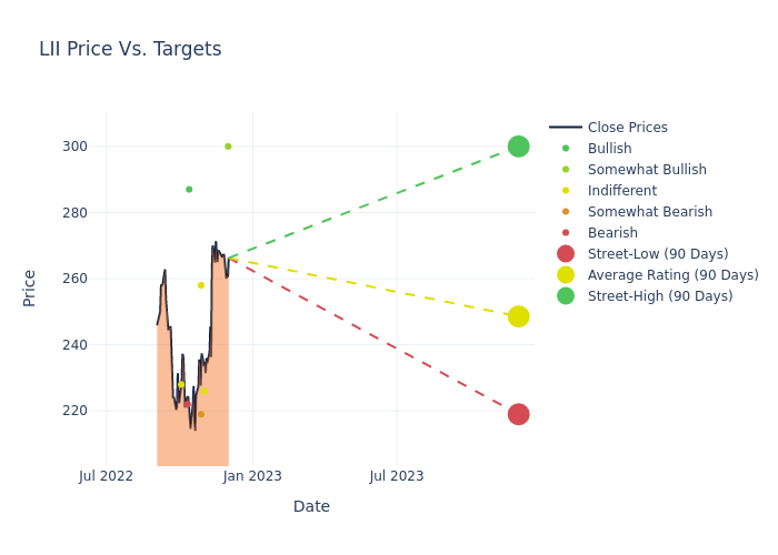 These 9 analysts have an average price target of $247.67 versus the current price of Lennox International at $266.265, implying downside.