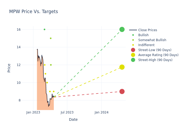 In the last 3 months, 13 analysts have offered 12-month price targets for Medical Properties Trust. The company has an average price target of $11.77 with a high of $17.00 and a low of $8.00.