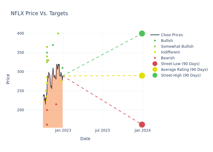 These 20 analysts have an average price target of $287.95 versus the current price of Netflix at $289.29, implying downside.