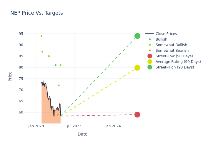According to 6 analyst offering 12-month price targets in the last 3 months, NextEra Energy Partners has an average price target of $77.5 with a high of $87.00 and a low of $59.00.