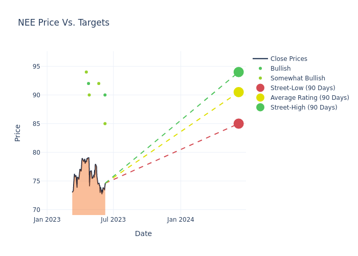 NextEra Energy (NYSE:NEE) has observed the following analyst ratings within the last quarter: