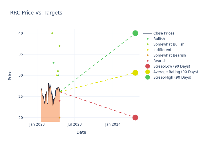 These 14 analysts have an average price target of $30.57 versus the current price of Range Resources at $26.08, implying upside.