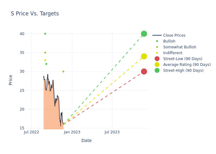 According to 5 analyst offering 12-month price targets in the last 3 months, SentinelOne has an average price target of $34.0 with a high of $40.00 and a low of $30.00.
