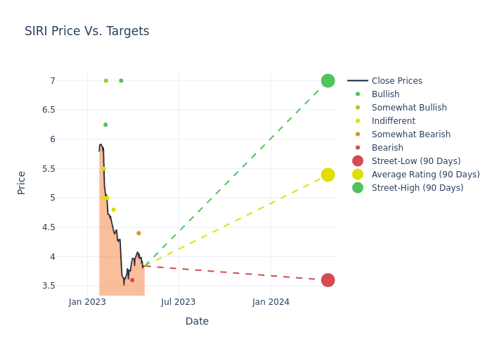 In the last 3 months, 11 analysts have offered 12-month price targets for Sirius XM Holdings. The company has an average price target of $5.54 with a high of $7.00 and a low of $3.60.