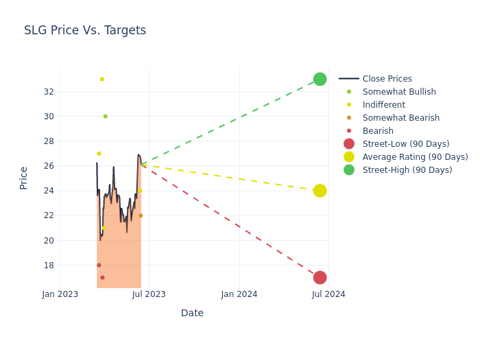 In the last 3 months, 8 analysts have offered 12-month price targets for SL Green Realty. The company has an average price target of $24.0 with a high of $33.00 and a low of $17.00.