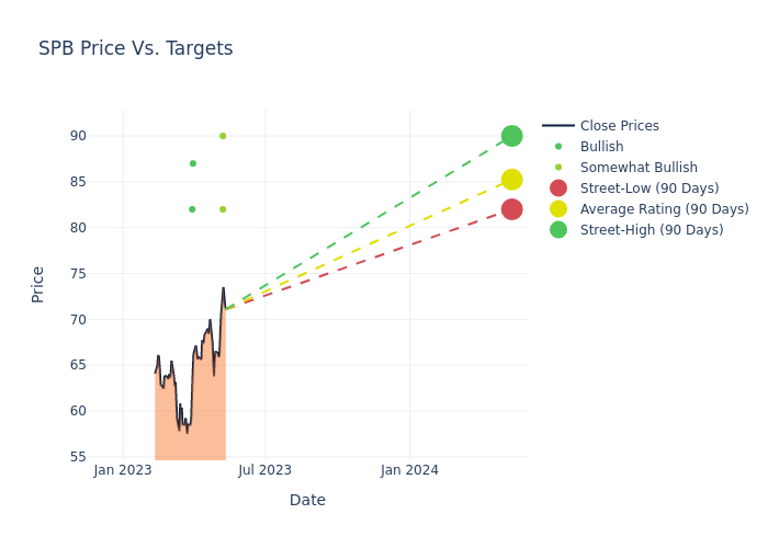 These 5 analysts have an average price target of $83.2 versus the current price of Spectrum Brands Holdings at $71.135, implying upside.