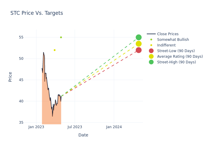 In the last 3 months, 4 analysts have offered 12-month price targets for Stewart Information Servs. The company has an average price target of $54.5 with a high of $58.00 and a low of $52.00.
