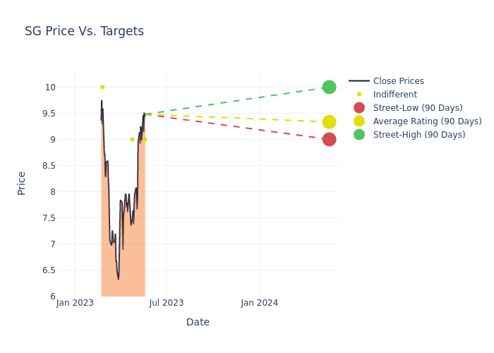 In the last 3 months, 4 analysts have offered 12-month price targets for Sweetgreen. The company has an average price target of $9.25 with a high of $10.00 and a low of $9.00.