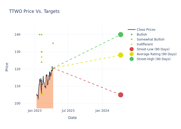In the last 3 months, 14 analysts have offered 12-month price targets for Take-Two Interactive. The company has an average price target of $128.21 with a high of $140.00 and a low of $105.00.