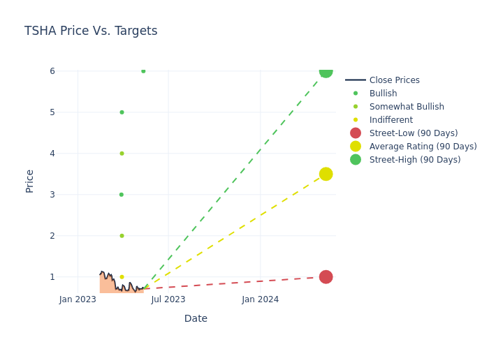 In the last 3 months, 7 analysts have offered 12-month price targets for Taysha Gene Therapies. The company has an average price target of $3.86 with a high of $6.00 and a low of $1.00.