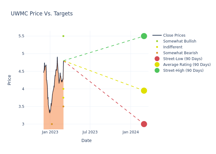 These 7 analysts have an average price target of $3.68 versus the current price of UWM Hldgs at $4.79, implying downside.