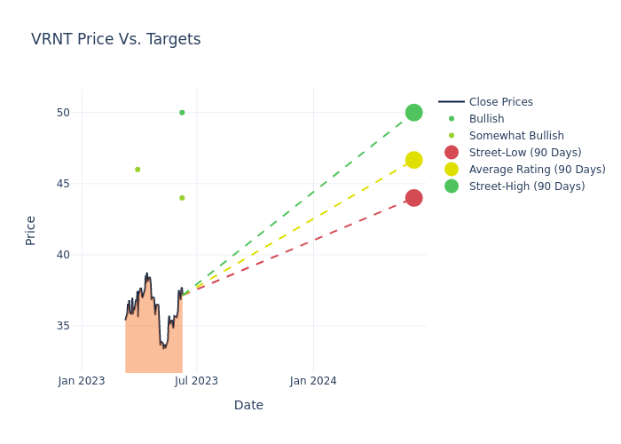 In the last 3 months, 4 analysts have offered 12-month price targets for Verint Systems. The company has an average price target of $47.5 with a high of $50.00 and a low of $44.00.