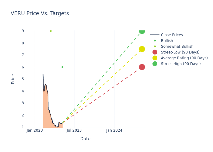 According to 6 analyst offering 12-month price targets in the last 3 months, Veru has an average price target of $9.17 with a high of $14.00 and a low of $6.00.