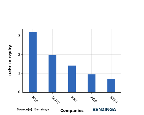 In terms of the Debt-to-Equity ratio, Automatic Data Processing can be assessed by comparing it to its top 4 peers, resulting in the following observations: