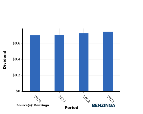 As you can see, from 2020 to 2023, investors saw an average increase in the company’s dividend per share, rising from $0.70 in 2020 to $0.75 in 2023. This is good for investors because it shows that the company has steadily returned more capital back to their shareholders and it could mean that they are planning to continue increasing dividends.