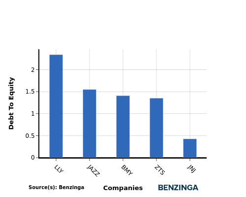 By evaluating Johnson & Johnson against its top 4 peers in terms of the Debt-to-Equity ratio, the following observations arise: