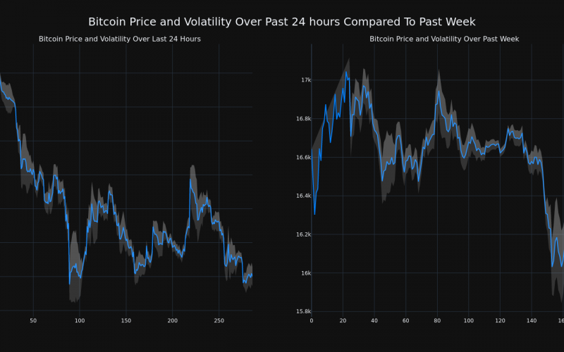 Bitcoin’s (CRYPTO: BTC) price has decreased 3.55% over the past 24 hours to $16,000.30, continuing its downward trend over the past week of -4.0%, moving from $16,641.89 to its current price.